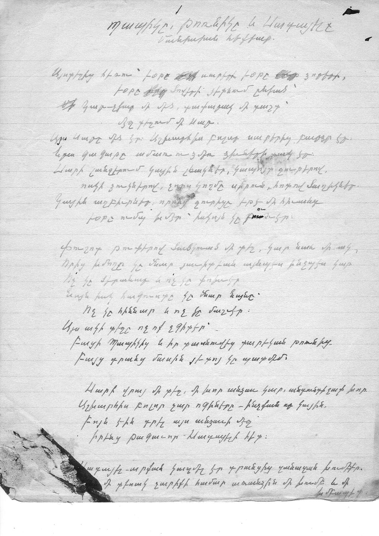 Version originale manuscrite par Aram Nercessian (arménien) :